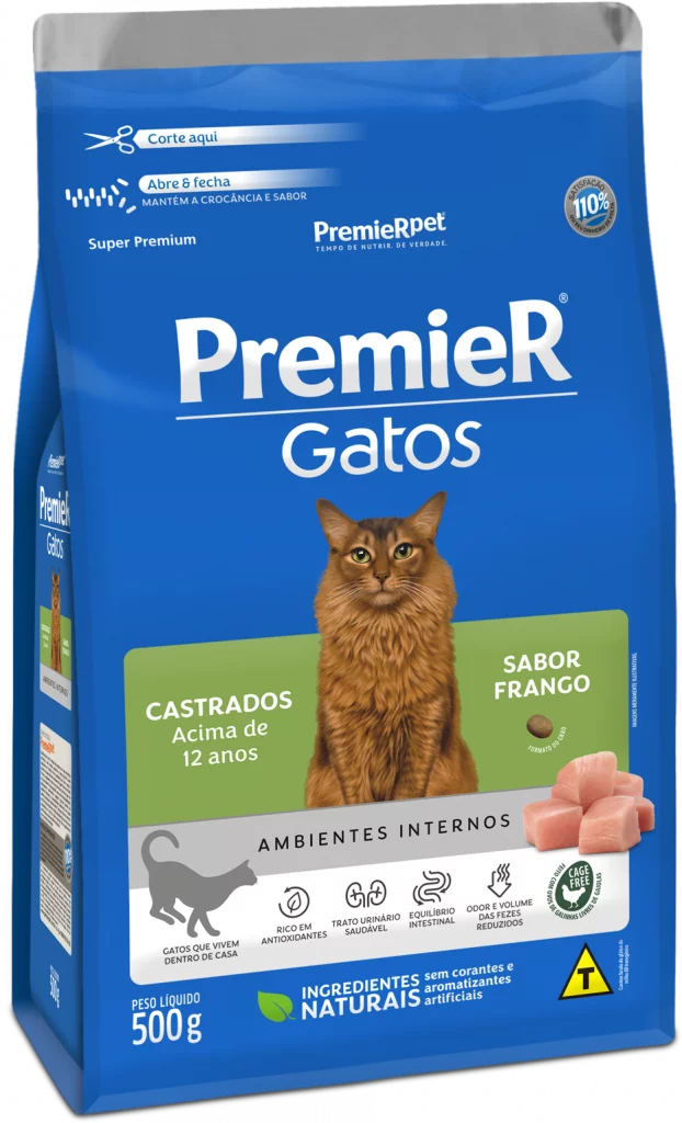 RAÇÃO PREMIER GATOS CASTRADOS ACIMA DE 12 ANOS 500G